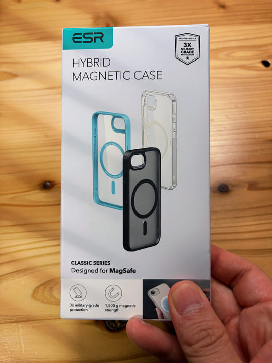 ESRのケースは、販売ページ上ではiPhone17e向けとして案内されていましたが、届いた実物パッケージの表記はiPhone16eベースでした。現時点では、16e表記のケースが17e向けにも共用販売されている製品のひとつと見られます。